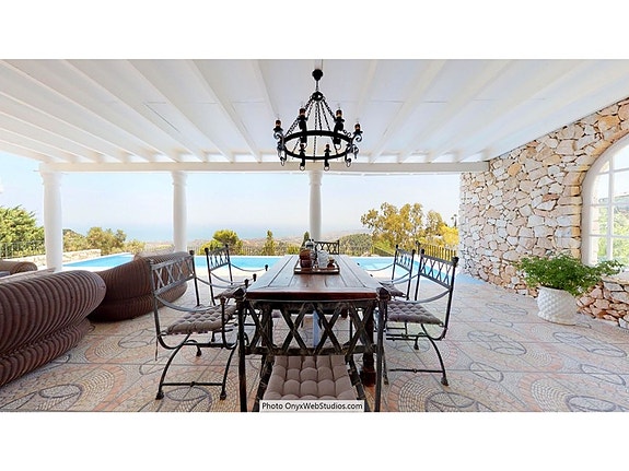 Sør vendt villa i Mijas med praktfull utsikt, nær landsby og strand. Renovert i 2018-2019, inkluderer romslig stue, master soverom med terrasse, flere bad, to bassenger, hage og ekstra leilighet. Mulighet for mer bygging.