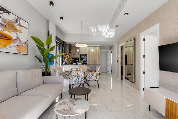 Punta Prima er et veletablert boligområde i kystkommunen Orihuela Costa. Dette området har en solid infrastruktur med et stort utvalg blant restauranter og butikker. Et av Spanias største utendørs kjøpesentre (Zenia Boulevard) ligger like i nærheten. Området er ellers kjent for sine kritthvite sandstrender med “blå flagg” stempel, en indikasjon på blant annet høy vannkvalitet. Det er også en fantastisk promenade for flotte turer, flere golfbaner i nærheten, inkludert Villamartin, Las Ramblas, Campoamor og det prisbelønte golfanlegget Las Colinas. Det finnes gode bussforbindelser som tar deg med nedover langs kysten eller inn til Alicante sentrum.Avstand