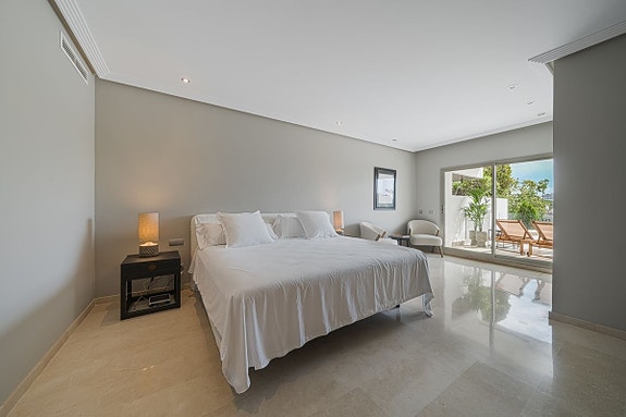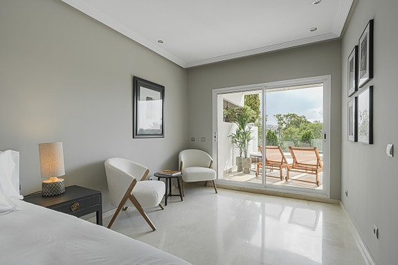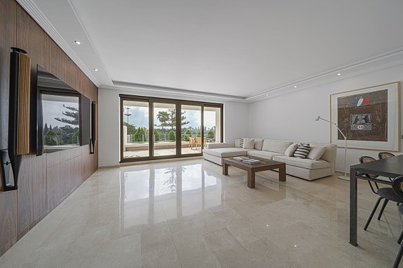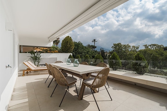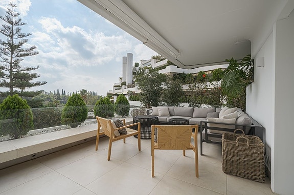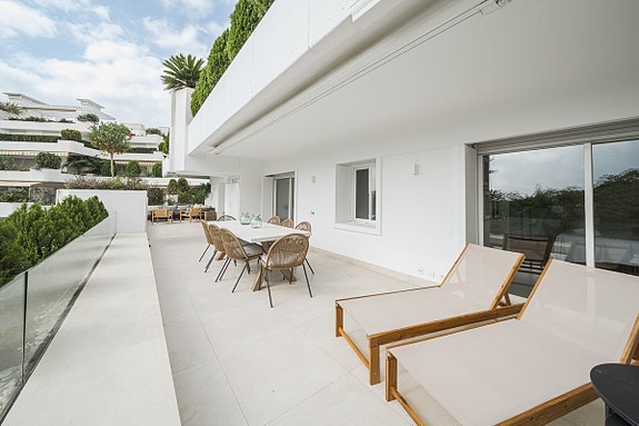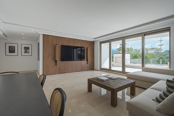 Moderne og nylig renovert leilighet i Las Lomas del Marbella Club, sikret kompleks på Golden Mile. Alt på ett plan, med stue/spisestue som åpner til en stor terrasse, separat kjøkken, hovedsoverom med bad og garderobe, to gjestesoverom og full møblering. Fellesområdene har hager og basseng, plassert mellom Marbella by og Puerto Banús.
