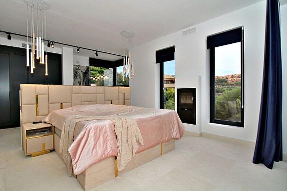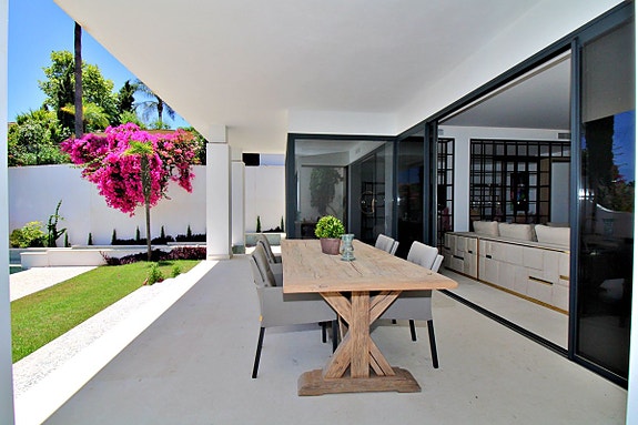 Velkommen til denne lekre villaen i Elviria, nyoppusset og med utsikt over Santa Maria Golfbane. Den har en åpen planløsning, toppmoderne kjøkken, og romslig stue med tilgang til bassenget. Villaen byr på fire soverom, alle med eget bad, inkludert et master soverom med slående utsikt. Det er rikelig med utendørs terrasser, en med pergola, og et romslig garasje. Beliggende nær fasiliteter og stranden, kombinerer denne boligen luksus med bekvemmelighet.