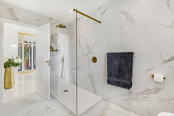 - Totalt fire soverom, alle med egne bad, hovedsoverom med walk-in-garderobe