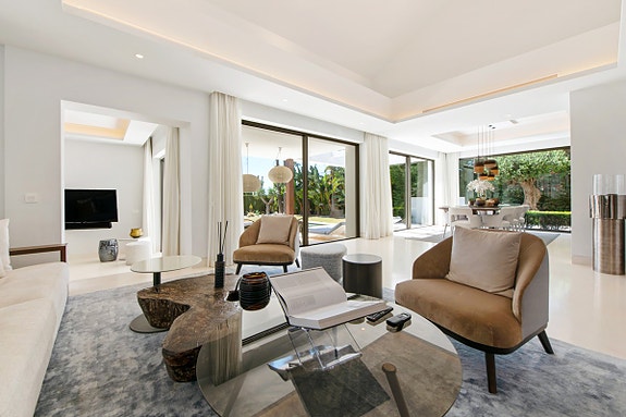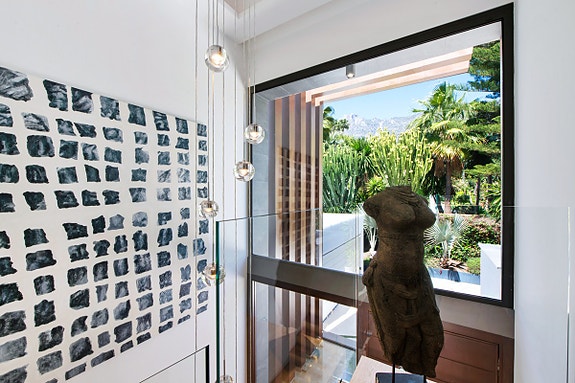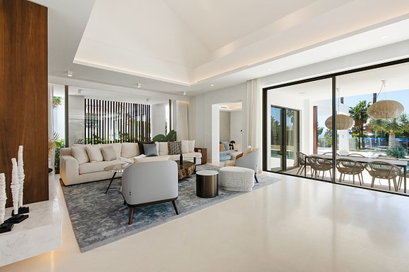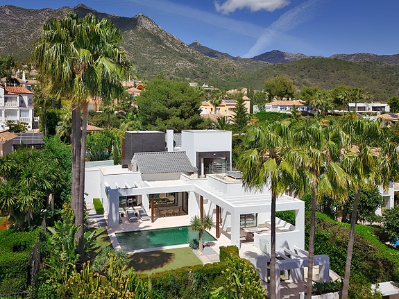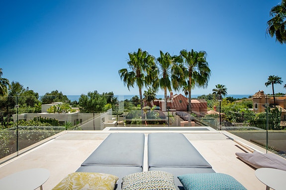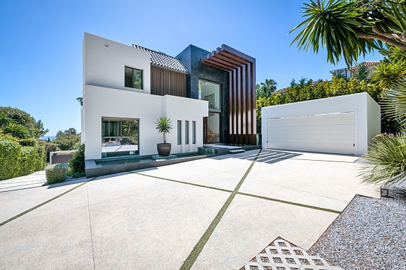 Opplev luksus i Sierra Blanca. En villa med toppmoderne design, eleganse og avanserte funksjoner. Hjemmet har åpen planløsning, høyt under taket, og er inndelt i ulike avslapningsområder inkludert et luksuskjøkken. To en-suite soverom på hovedetasjen og et ekstra gjesterom tilbyr komfort og privatliv. Master soverommet øverst har en stor terrasse med havutsikt. Dette er en eksklusiv bolig som setter standarden for moderne, luksuriøst liv.