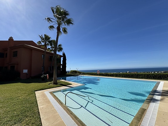 Sjekk ut dette penthouset med utsikt over sjøen og Marbella Golf! I et lite nabolag med luksuriøse fasiliteter som basseng og hage. Leiligheten har stue med peis, fire soverom, fire bad, og parkering. Perfekt for de som elsker luksus og golf!