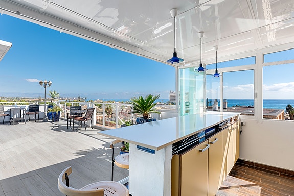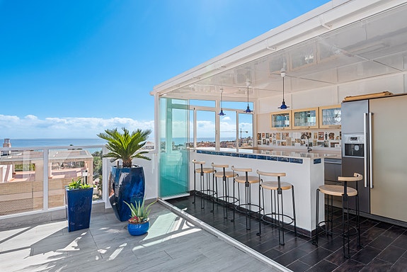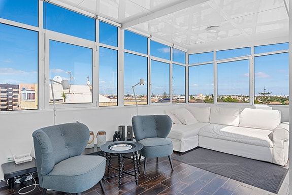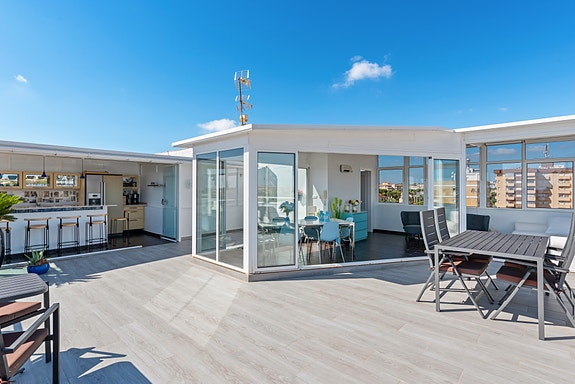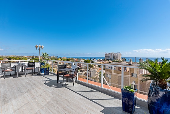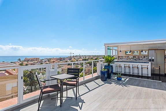 Spania1 har gleden av å presentere en flott penthouse-leilighet i hjertet av La Zenia. Leiligheten ligger kun 200 m fra La Zenia stranden og fra takterrassen kan du nyte fantastisk havutsikt. Takterrassen er utstyrt med et fullt utstyrt kjøkken, som gir muligheten til å nyte den fantastiske havutsikten mens du lager mat eller slapper av.