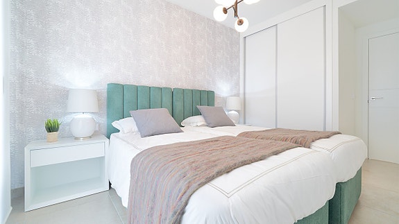 Spania1 har gleden av å presentere et helt nytt prosjekt med luksuriøse leiligheter med 2 og 3 soverom, med et utvalg av tre modeller: Leiligheter på bakkeplan med hage, mellom etasje med terrasse eller toppetasje med privat takterrasse.