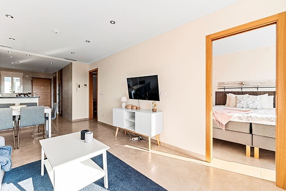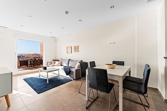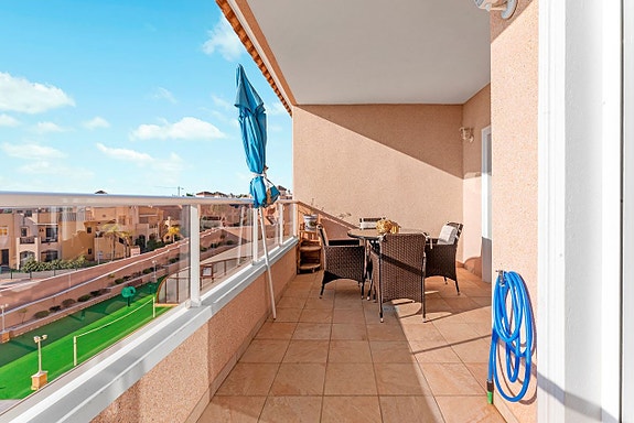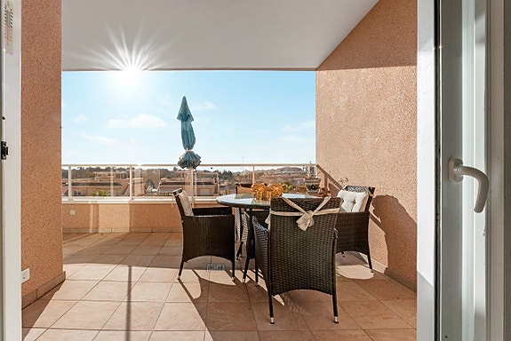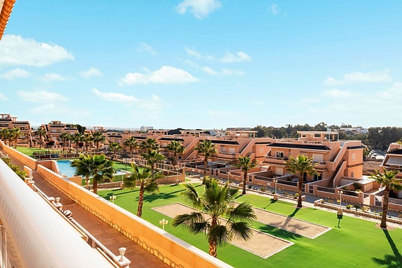 Spania1 presenterer en fantastisk leilighet i det prestisjefylte boligkomplekset Vista Azul XXVIII Exclusive i Punta Prima. Her bor du rolig, omgitt av naboer fra ulike land, og med gangavstand til dagligvarebutikker, restauranter og det store kjøpesenteret La Zenia Boulevard.
