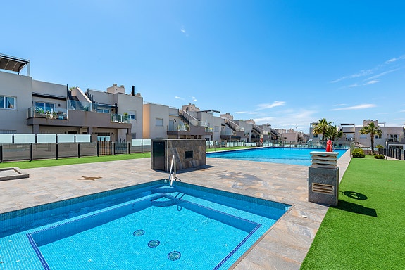 Beliggende bare noen få minutter å til restauranter, kaféer og butikker gjør dette til et svært populært område hvor man ikke er avhengig av bilen. Det er også en fin spaserstur inn til sentrum av Torrevieja og til ting som badeland, kino og kjøpesenteret "Habaneras". Ønsker man en tur på en av de flotte strendene er det en sykkeltur på 10 min fra leiligheten.
