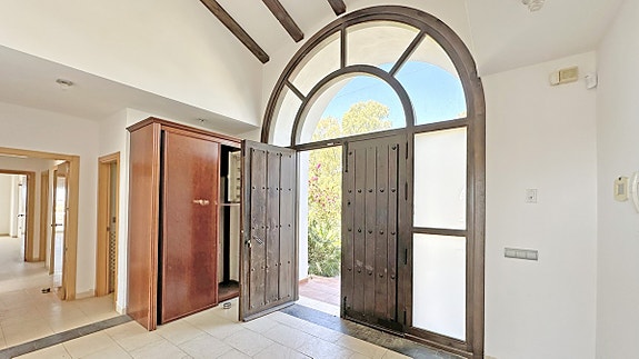 I husets hovedetasje er det en elegant hoveddør som fører til hallen, 3 soverom, hovedsoverommet med walk-in-garderobe og eget bad, 2 bad, et gjestetoalett, et romslig kjøkken-spiserom og en stue med peis som åpner seg mot en overbygd og innglasset terrasse med tretak på cirka 35m2.