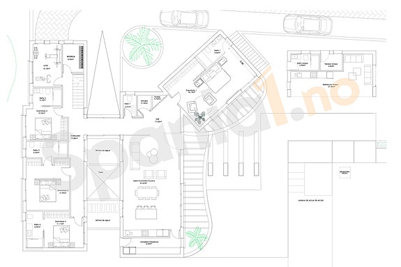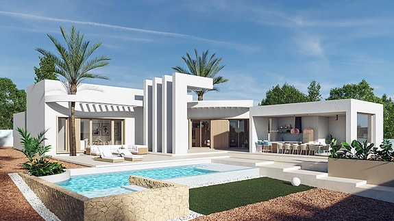Spania1 har gleden av å presentere denne svært eksklusive villaen med en tomt på over 1.500 kvadratmeter. Boligen hae underetasje med garasje og er designet for å utnytte plass og naturlig lys optimalt.