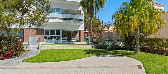 Vi i Spania1 gleder oss til å hjelpe dere videre i prosessen!La Zenia/ VillamartìnDenne moderne bakkeplanleiligheten i Los Dolses, Orihuela Costa, har 3 soverom og et elegant design. Med en romslig stue og spisestue med åpen kjøkkenløsning, to bad og et vaskerom, tilbyr den stil og komfort. Terrassen er delvis overbygd med glassgardiner og en sørvendt terrasse som vender ut mot en stor privat hage. Direkte tilgang til bassengområdet fra hagen, sammen med privat parkering og en bod, gir både luksus og praktisk bruk.