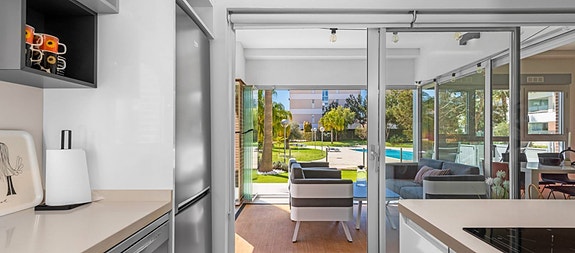 - Terrassen har direkte tilgang til det flotte bassengområdet.