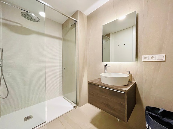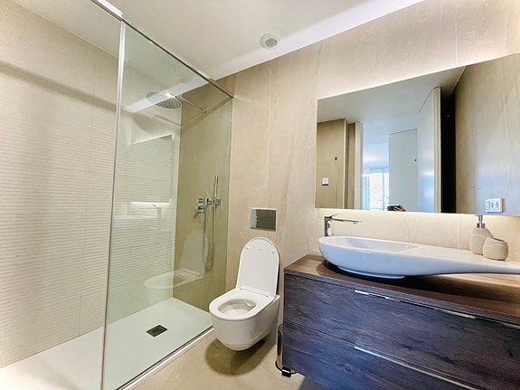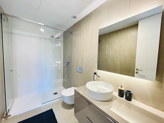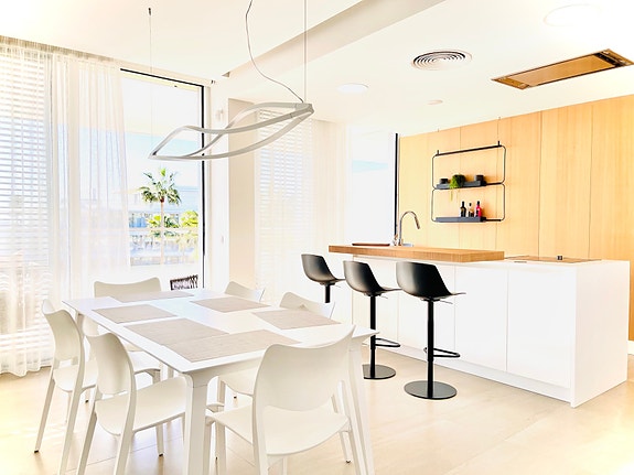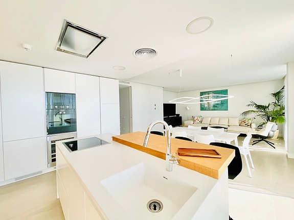 Porcelensgulv, nøytrale toner og et åpent moderne design skaper en lys og moderne atmosfære for den perfekte middelhavsfølelsen!Leiligheten har et smarthus system for å kontrollere persienner og markiser, lys, klimakontroll og alarmer. Oppvarmingen er aerotermisk med gulvvarme.