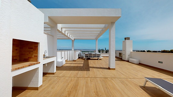 Ferdigstilt juni 2025Los Balcones er et veletablert område 45 minutter sør for Alicante flyplass og 30 minutter nord for Corvera (Murcia) flyplass. Dette prosjektet ligger på en liten høyde med flott utsikt mot saltsjøene og Torrevieja. Det er gangavstand til matbutikk, restauranter, cafeer, spa-hotell med gym og innendørs basseng, tennisbane mm. Det tar cirka 5 minutter å kjøre til nærmeste strender og rundt 10 minutter til det store kjøpesenteret i La Zenia.Avstand