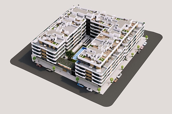 Boligkomplekset består av leiligheter i populære Santa Pola, med 2 eller 3 soverom og 2 bad! Du kan velge mellom leiligheter på bakkeplan med hage, leiligheter i mellometasje med store terrasser og åpen utsikt, og penthouseleiligheter med private takterrasse og havutsikt.