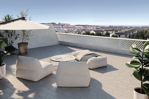Penthouse i Mijas 2 soverom, stor takterrasse, panoramautsikt og basseng