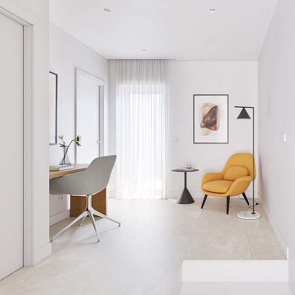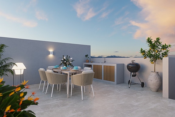 I det sjarmerende området Torre de la Horadada presenterer vi i Spania1 et helt nytt prosjekt som forventes ferdigstilt i desember 2024. Her bygges tre moderne rekkehus, hver med privat parkering, romslige takterrasser med basseng, tre soverom og to bad. Prosjektet er bygget med nøye utvalgte materialer i en fantastisk beliggenhet med kort avstand til den sandete stranden med kafeer og restauranter. Skynd deg, det er kun tre eiendommer tilgjengelige!