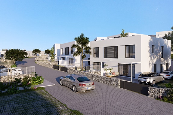 Disse nye rekkehusene har 3 soverom og et areal på opptil 145m². De er fordelt over to plan, inkludert en privat hage og muligheten for eget basseng!