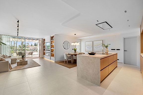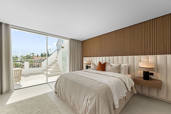 Det åpne kjøkkenet og stueområdet er utstyrt med skreddersydde treinnredninger inspirert av skandinavisk stil, Siemens-apparater og designerbelysning. De tre soverommene har førsteklasses funksjoner som dimbare spotlights, LED-stemningsbelysning og egne bad med Porcelanosa-armaturer og gulvvarme. Utendørsområdene inkluderer en nedre terrasse og en stor øvre terrasse, utstyrt for avslapning og underholdning. Med sine luksuriøse fasiliteter og gjennomtenkte design tilbyr denne duplex-penthousen en raffinert livsstil.Spania1 har gleden av å presentere denne imponerende duplex-penthousen i hjertet av La Quinta, Marbella. Denne luksuriøse leiligheten kombinerer sofistikert design med praktiske fasiliteter og en førsteklasses beliggenhet, med utsikt over golfbanen og delvis havutsikt.