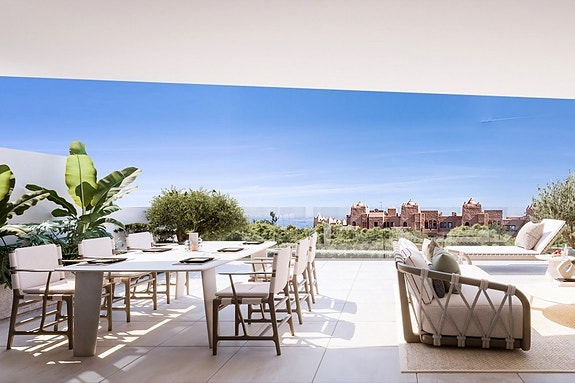 Boligene skiller seg ut med sine romslige terrasser med praktfull utsikt.