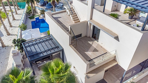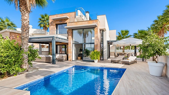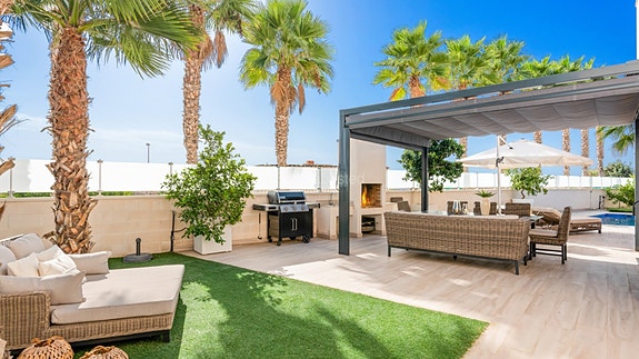 Spania1 har gleden av å presentere denne luksuriøse hjørne villaen i Lomas de Cabo Roig. Villaen ligger sentralt med 10 minutters gange til Spanias største utendørs kjøpesenter, resturanter og matbutikker. Til stranden er det kun 25 minutters gange eller en rask sykkeltur.Huset har et stort uteområde med solsenger, sofagrupper, spisegruppe og lounge. Perfekt eiendom for dem som ønsker det lille ekstra. Det er utekjøkken med vask, grill og god plass til familie og venner.