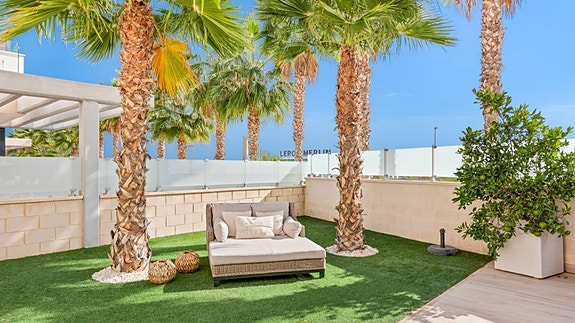 Sydvendt! Luksuriøs hjørnevilla med 3 soverom og 2 bad | Nydelig uteplass med hage og privat basseng