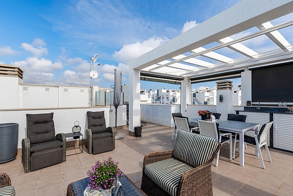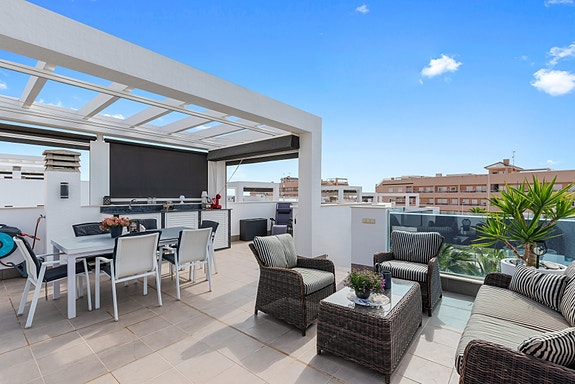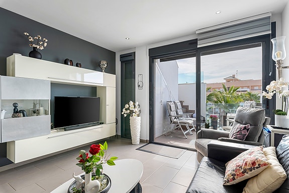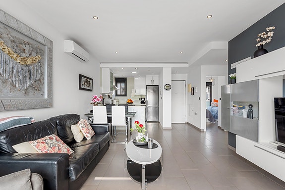 Spania1 har gleden av å presentere denne flotte leiligheten i et meget populært området. Kun en kort spasertur fra det pulserende handelssenteret Punta Marina, hvor du har en rekke barer, butikker og restauranter. Stranden ligger ca 20 minutter å gå fra leiligheten. Og for golfentusiaster ligger fire 18-hulls golfbaner kun 10-minutters kjøretur unna.