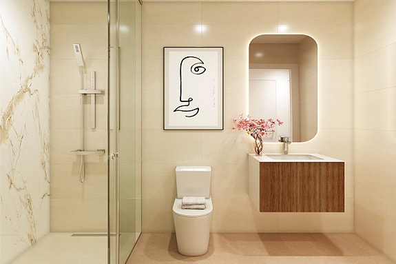 Her kan du velge mellom 2 eller 3 soverom og 2 bad. I prosjektet tilbys det leiligheter på bakkeplan, mellom etasje og penthouse.