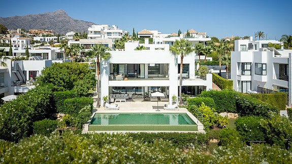 Spania1 har gleden av å presentere denne imponerende villaen i hjertet av Nueva Andalucía, i et prestisjefylt, inngjerdet område. Villaen strekker seg over tre nivåer og byr på romslig luksus.