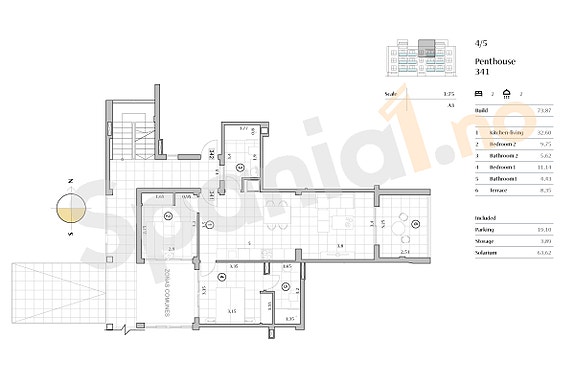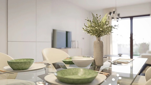 Spania1 har gleden av å presentere et helt nytt boligkompleks i moderne stil med 12 leiligheter. Her kan du velge leiligheter i første etasje med hage, mellometasje med balkong eller toppleiligheter med privat takterrasse. Alle leilighetene har åpen planløsning mellom stue, spisestue og kjøkken, to romslige soverom med innebygde garderober og to bad. De fleste eiendommene har privat parkeringsplass og bod inkludert i prisen.