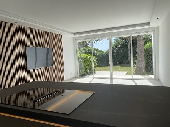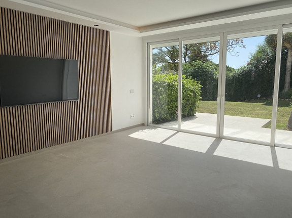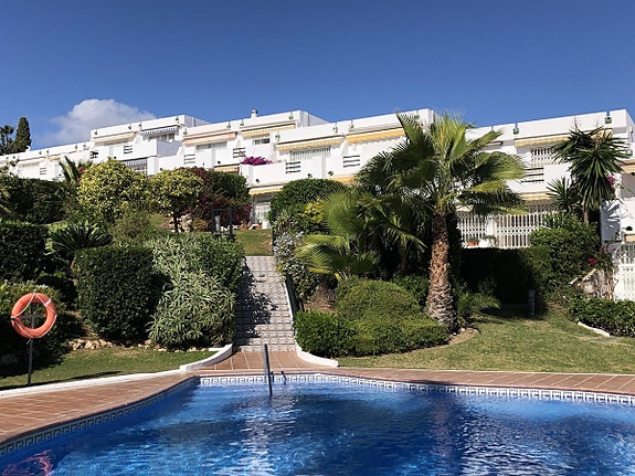 Los Algarrobos er et fantastisk inngjerdet boligområde med 54 boliger, plassert ved den verdenskjente Aloha Golf Course. Felles fasiliteter inkluderer tennisbaner, padeltennis og oppvarmet basseng. Rekkehuset har nylig blitt renovert og har 4 soverom, 2 en-suite bad og 1 ekstra bad. Det har et moderne kjøkken, innebygde garderober og klimaanlegg som dekker både varme og kjøling. Boligen har en sørvendt plassering med utsikt over golfbanen og mot havet.