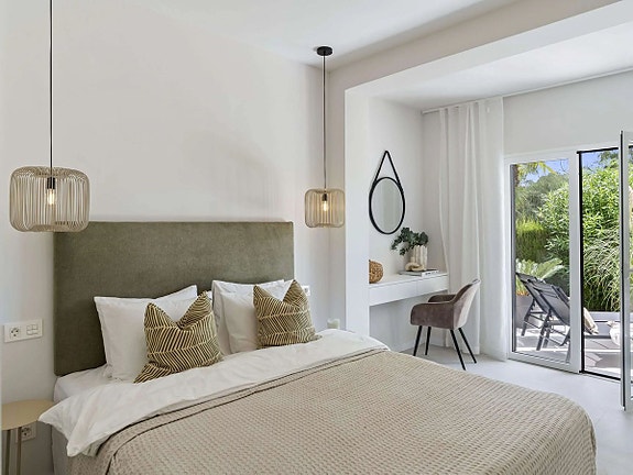 Stilfullt renovert rekkehus ved golfbanen i Aloha, med en ideell beliggenhet nær fasiliteter. Rekkehuset går over to etasjer og har 4 soverom og 3 bad, samt en stor åpen stue- og spisestueløsning. Den øvre terrassen har en integrert grill og salongområde som kan nås fra stuen via skyvedører, og gir en innendørs/utendørs følelse. Nederste terrasse ved hagen er tilgjengelig fra de to soverommene i første etasje. Rekkehuset leveres med parkering, alarmsystem, klimaanlegg og møbler inkludert.