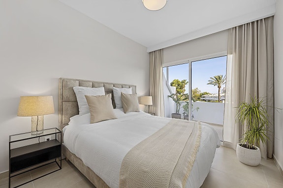 Denne nylig renoverte leiligheten med 3 soverom og 2 bad ligger i det eksklusive området Los Dragos, Nueva Andalucia. Den moderne og funksjonelle boligen har et åpent kjøkken- og stueområde, en privat terrasse med tilgang fra stuen og hovedsoverommet, samt en takterrasse med panoramautsikt. Komplekset tilbyr også fasiliteter som tennisbane, padelbane, treningssenter, coworking-område, og et felles svømmebasseng omgitt av velstelte hager.