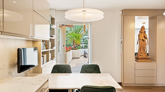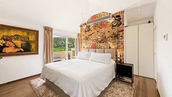 Denne eksklusive toppetasje-dupleksen ligger i det sikre og prestisjefylte området Las Alamandas i Nueva Andalucia, mellom Las Brisas og Los Naranjos golfbaner. Leiligheten er fullstendig renovert til høyeste standard og har en sørvendt beliggenhet med fantastisk utsikt over golfbaner og kysten. Den tilbyr luksuriøse fasiliteter som tre bassenger (ett oppvarmet), treningsstudio, og 24-timers sikkerhet. Leiligheten har en moderne åpen løsning med en romslig terrasse, designerkjøkken, og luksuriøse soverom med tilhørende bad.