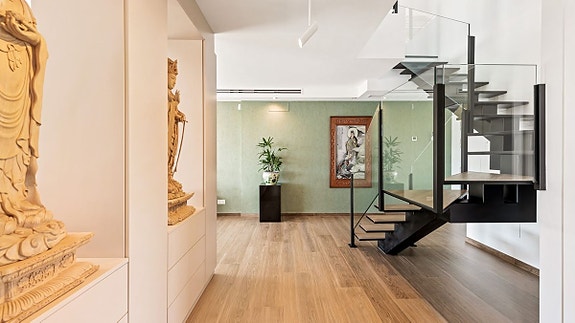 - Designer trapp opp til master-suite med terrasse og walk-in garderobe