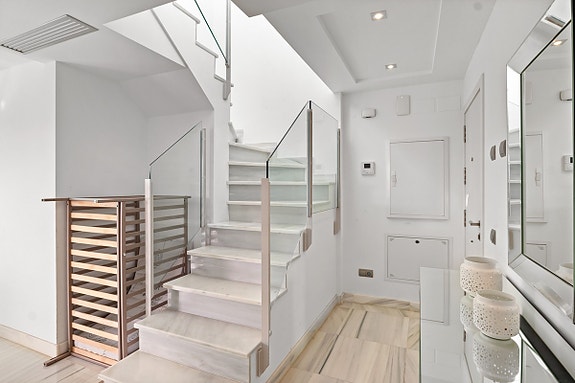 Denne moderne toppleiligheten ligger i det prestisjefylte Jade Beach-komplekset i San Pedro de Alcántara, Marbella. Leiligheten har 3 soverom og 2 bad, og er innflyttingsklar med høy standard. Med en åpen planløsning, stilrent kjøkken og to terrasser (25 m² og 70 m² takterrasse), er dette en bolig for de som ønsker luksus og komfort. Alle rommene har gulvvarme, aircondition, og er utstyrt med innebygde garderober. Fellesområdene er vakkert anlagt med basseng, solsenger, og bad.
