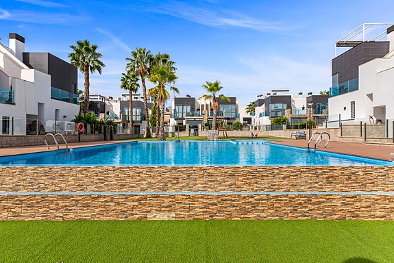 Beliggenheten er ideell, med kort gangavstand til barer, butikker, restauranter, supermarked og bussholdeplass. De vakre strendene Campoamor og Cabo Roig er kun 5 minutters kjøring unna, sammen med tre golfbaner. Alicante flyplass er 45 minutter unna, og Murcia Corvera flyplass kun 40 minutter.