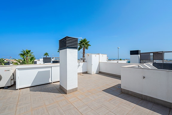 Ekstra fasiliteter inkluderer innebygd klimaanlegg, marmorgulv, delvis elektriske persienner, ekstra utvendig oppbevaring på takterrassen og oppbevaringsplass under trappene til vaskemaskinen.