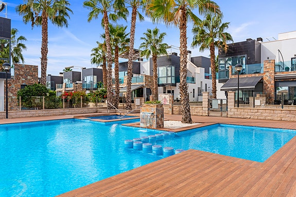 Spania1 er stolt av å presentere dette flotte rekkehuset i det populære Oasis Hill-komplekset!Dette rekkehuset har 3 soverom og 2 bad, og ligger i et eksklusivt, inngjerdet område med luksuriøse fasiliteter, som to bassenger, boblebad og lekeplass – alt for en resort-lignende opplevelse rett utenfor døren. Det er en ideell bolig for dem som ønsker en komfortabel og avslappende livsstil i et prestisjefylt nabolag.