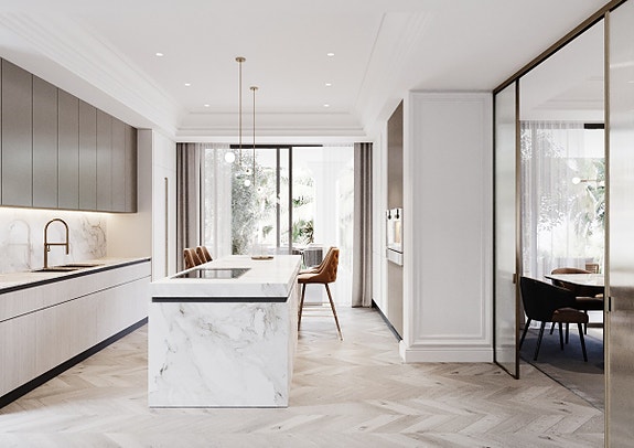 - Åpen kjøkkenløsning med toppmoderne utstyr og spesiallaget kjøkkenøy