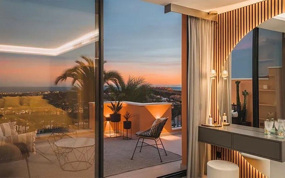 Denne romslige toppetasje-dupleksen ligger i det kjente inngjerdede samfunnet Los Belvederes i La Cerquilla, Nueva Andalucía. Leiligheten er nylig renovert og har panoramautsikt over havet, fjellene og Golf Valley. Den inneholder 3 soverom og 3 bad, åpen kjøkken- og stueløsning med toppkvalitets Neff-apparater, og flere terrasser, inkludert en med jacuzzi. Boligen har gulvvarme, Sonos lydsystem, og klimakontroll. Fellesområdene inkluderer basseng, hager, treningsstudio med badstue, og tennisbaner. Eiendommen har også en parkeringsplass og en bod.
