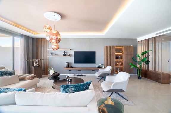 Moderne leilighet i Nueva Andalucia med moderne design. Leiligheten har 2 soverom og 3 bad, hvor hovedsoverommet har eget bad. Åpen stue og kjøkkenløsning gir direkte tilgang til en stor terrasse med fantastisk utsikt. Boligen inkluderer også tilgang til felles fasiliteter som to utendørse svømmebasseng, et innendørs oppvarmet basseng, treningsstudio, tyrkisk bad og badstue.