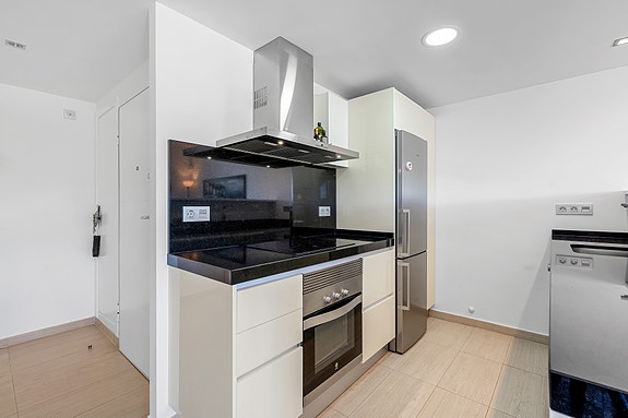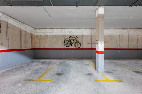 Leiligheten selges fullt møblert, inkludert hvitevarer, aircondition, utemøbler med pergola, bod på takterrassen og egen parkeringsplass i et underjordisk garasjeanlegg.