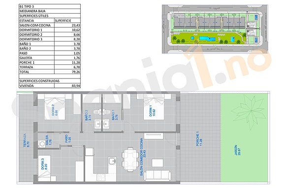 Prisliste- Leilighet på bakkeplan med 3 soverom og 2 bad fra 275.000 euro