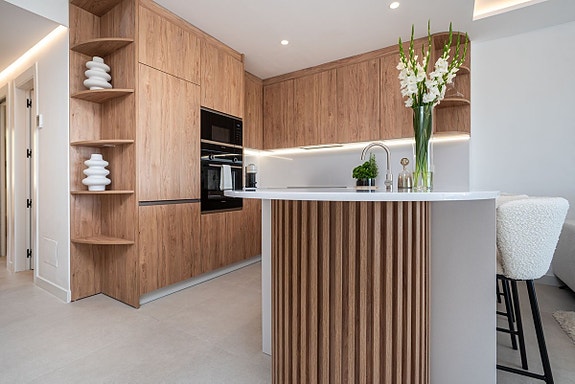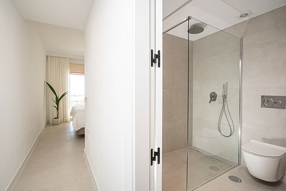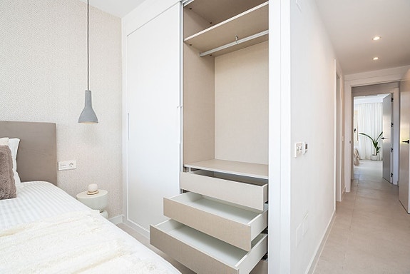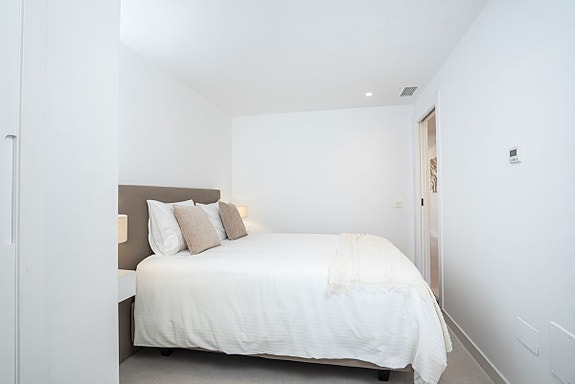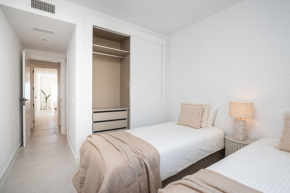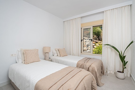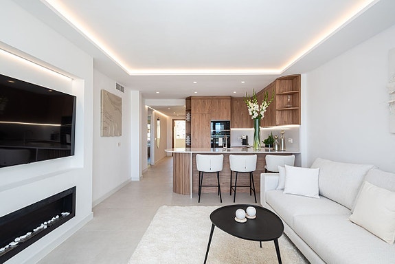 Moderne leilighet i La Cerquilla, Nueva Andalucía, nylig renovert med høy standard. Leiligheten har en stor overbygd terrasse med utsikt over havet og fjellet La Concha, og et fleksibelt vindussystem som åpner opp for ulike bruksmuligheter. Interiøret er stilfullt med åpen løsning mellom kjøkken, spisestue og stue. Alle tre soverom er pent innredet med høy kvalitetsmaterialer, og to av dem har egne bad. Under gulvvarme gir komfort året rundt. Boligen har parkeringsplass og bod.