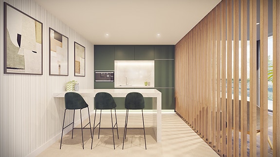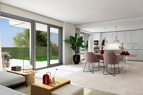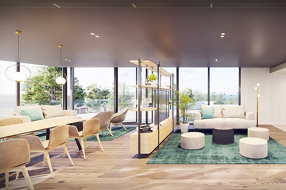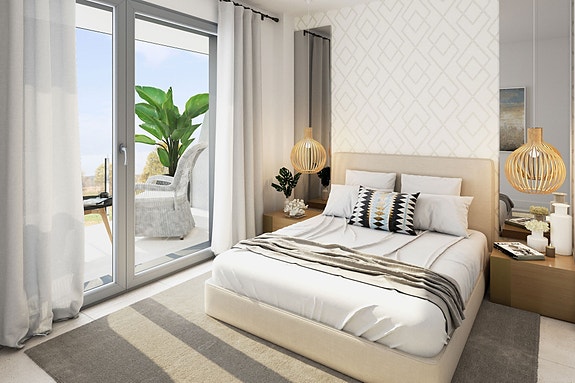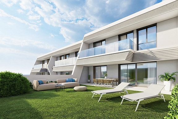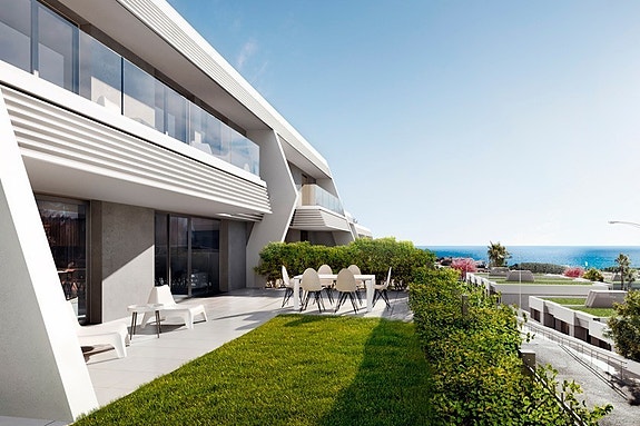 Moderne leiligheter med hav- eller golfutsikt - Stor terrasse og fellesområde med basseng, gym og coworking