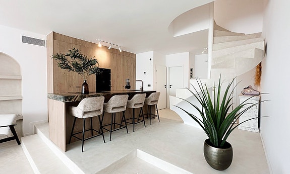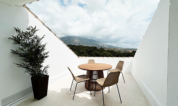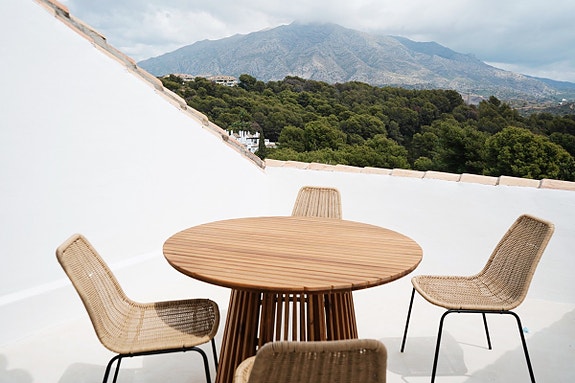 Dette nyoppussede rekkehuset i Nueva Andalucía kombinerer luksus og komfort med en avslappet og stilig atmosfære. Boligen har 3 soverom og 3 moderne bad, og fra privat terrasse kan man nyte fantastisk utsikt over La Concha-fjellet og havet. Eiendommen ligger nær butikker, restauranter og andre lokale fasiliteter, og har tilgang til et eksklusivt fellesområde med tennisbane, padelbane og et flott svømmebasseng.