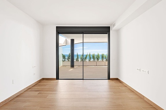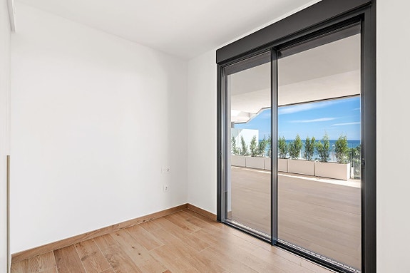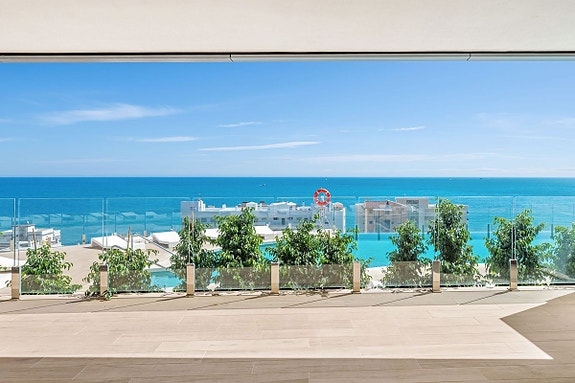 Eksklusiv leilighet på bakkeplan i et boligkompleks i Fuengirola som kombinerer innendørs og utendørs oppholdsrom med fantastisk havutsikt. Denne luksuriøse leiligheten har toppmoderne fasiliteter, inkludert et evighetsbasseng med utsikt mot havet, treningssenter med tyrkisk bad og badstue, og co-working område. Leiligheten har premium design, med porselensfliser, designer kjøkken og smarthus-system. Hovedsoverommet har walk-in garderobe og eget bad.