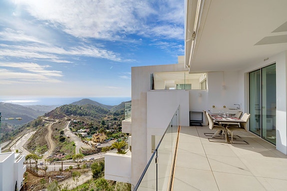 Dette luksuriøse penthouse byr på panoramautsikt over hav og fjell, og ligger i et rolig, eksklusivt område. Boligen har toppmoderne fasiliteter som fjernstyrt belysning, klimaanlegg, og vannbåren gulvvarme for maksimal komfort. Det finnes tre terrasser, hvorav en er overbygd og perfekt for bespisning og avslapning året rundt. Kjøkkenet er utstyrt med førsteklasses Siemens-apparater, og hele boligen er designet for å kombinere stil og funksjonalitet.