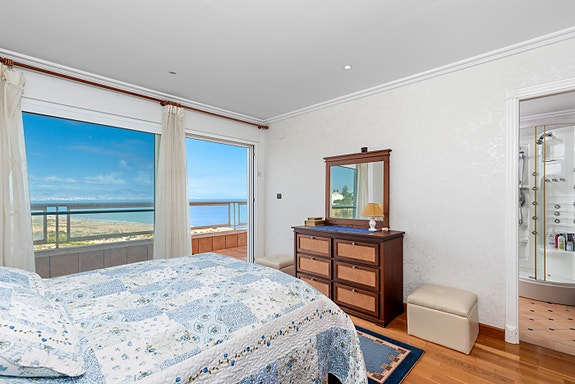 Boligen er utført i materialer av høy kvalitet for å gi eleganse, komfort og moderne bekvemmelighet. Her er både gulvvarme, for helårs varme og komfort, og air conditioning i alle rom.Hovedetasjen ønsker deg velkommen med en elegant entré og åpen stue- og spisestue. Store vinduer gir fantastisk havutsikt og fyller stuene med naturlig lys, den koselige peisen tilfører både sjarm og varme. Det fullt møblerte og velutstyrte kjøkkenet er enhver kokks drøm, perfekt for familiemiddagen. Fra entréen er det adkomst til et romslig soverom og et fullt utstyrt bad.