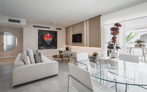 Flott sørvendt leilighet med 2 soverom og 2 bad i det populære området Nueva Andalucía, Marbella. Ligger i en lukket utvikling med felles hager og bassenger, samt kort avstand til både stranden, Puerto Banús og nærliggende fasiliteter som supermarked, Paddle Social Club og golfklubb. Leiligheten har en romslig stue med peis og stor terrasse, åpen kjøkkenløsning og hovedsoverom med eget bad.